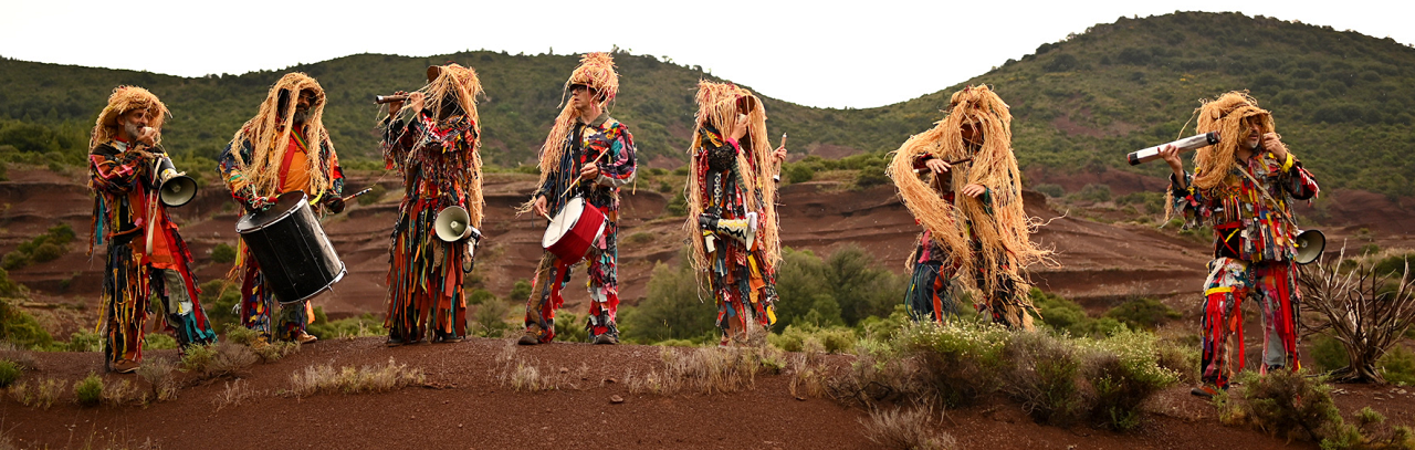 Tambours, grallas (hautbois catalans), fifre & pìfano (flûte brésilienne), neffars (trompes marocaines), gongs thaïlandais et chants, la joyeuse bande se régale de reprises d’un répertoire situé dans l’axe Méditerranée / Antilles / Amérique du Sud, de chansons populaires & de poésies en òc, castillan, français, portugais, catalan, arabe, soussou & créole et de compositions originales complètement barrées…